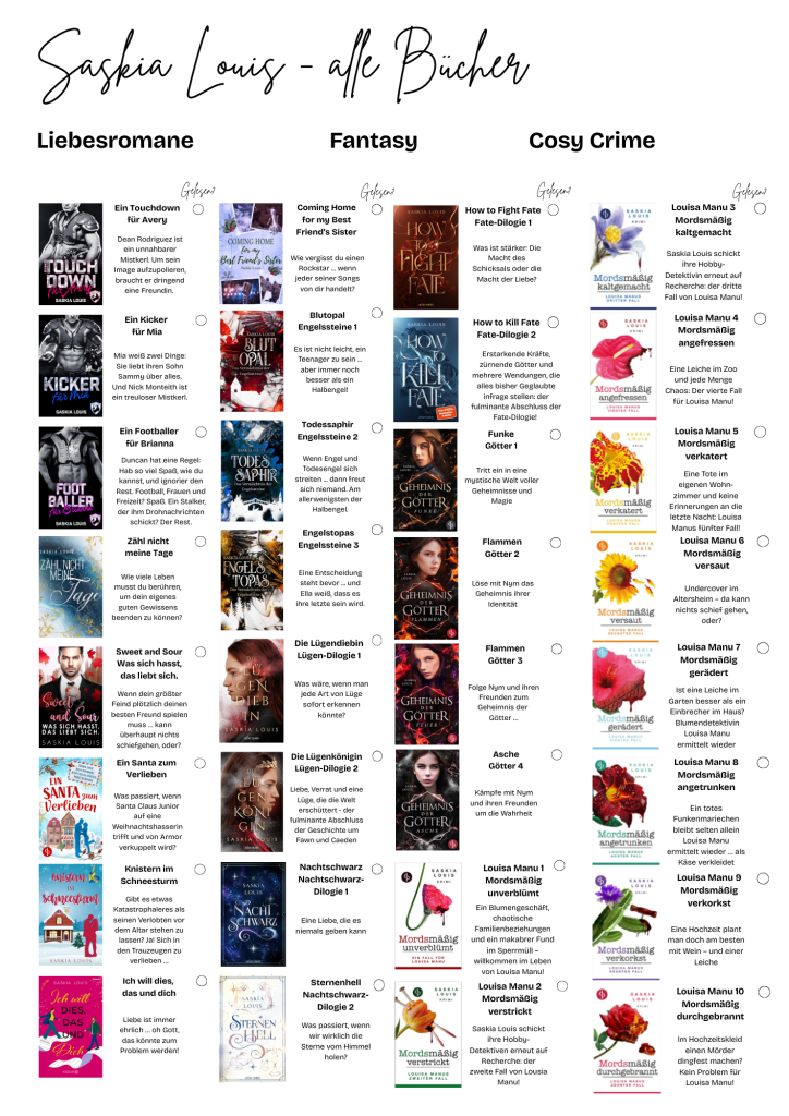 Hättest du gern eine kompakte Übersicht über all meine Bücher, die du noch dazu abhaken kannst, wenn du sie gelesen hast? Dann klick entweder hier oder unten auf das Bild und lad dir das PDF zum Ausdrucken herunter!